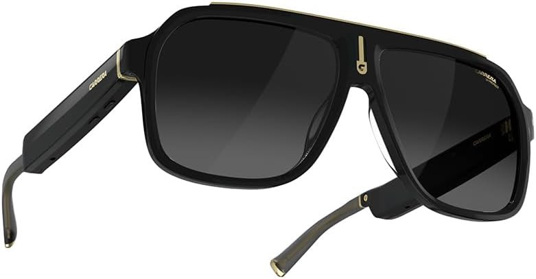 FASHION MEETS FUNCTION - These sunglasses transform and modernize our iconic silhouette for an elevated aesthetic. Handcrafted Mazzucchelli Italian acetate, precision engineered custom spring hinges and gold tone finishes, the full-rim navigator profile features the iconic Carrera āCā positioned proudly front and center.