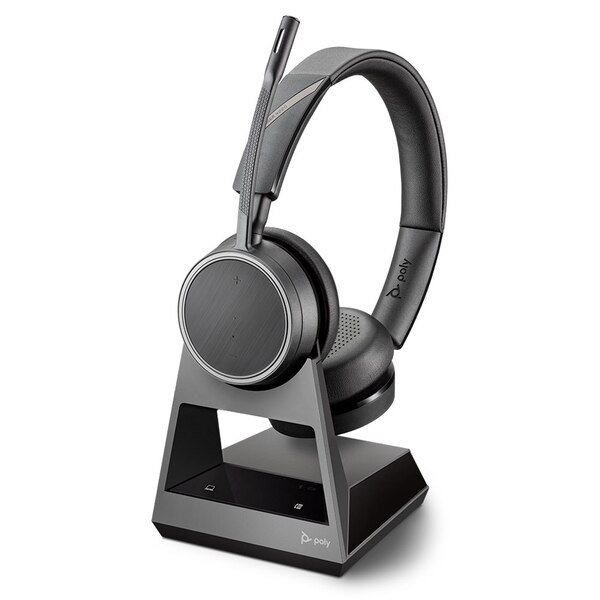 Poly Voyager 4220 Office combines top-class acoustic performance with wireless convenience in a professional Bluetooth headset. This model of Voyager 4220 comes with a two-way base that connects to a computer and a desk phone. The headset supports Bluetooth 5.0 to connect to the base, and also to connect to a mobile device, giving you a versatile communications solution. It has an extended Bluetooth range of 300ft line of sight.