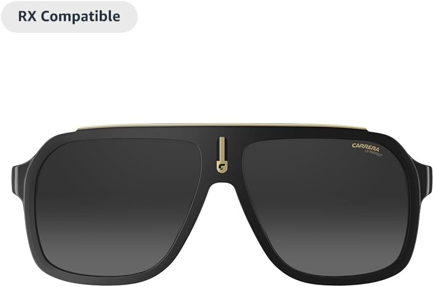 FASHION MEETS FUNCTION - These sunglasses transform and modernize our iconic silhouette for an elevated aesthetic. Handcrafted Mazzucchelli Italian acetate, precision engineered custom spring hinges and gold tone finishes, the full-rim navigator profile features the iconic Carrera āCā positioned proudly front and center.
